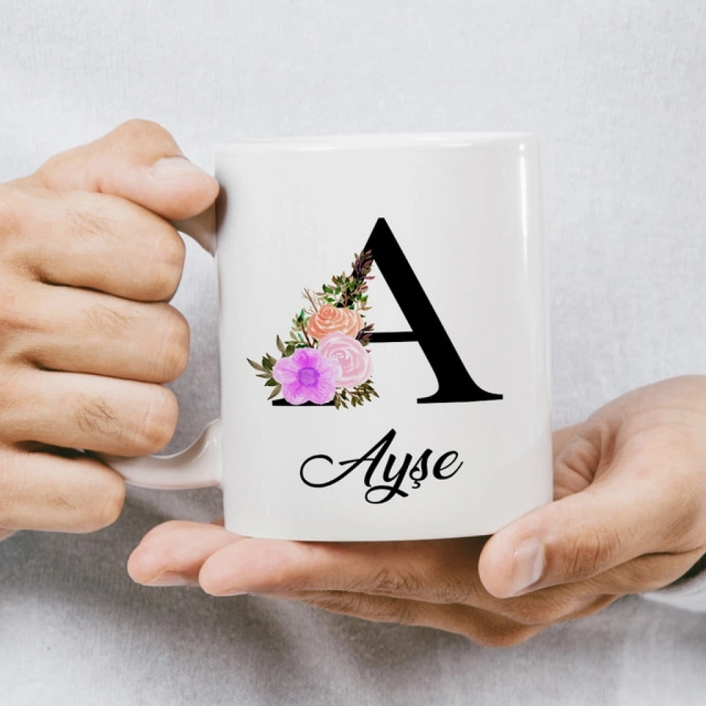 A Harfi Çiçekli İsme Özel Kupa