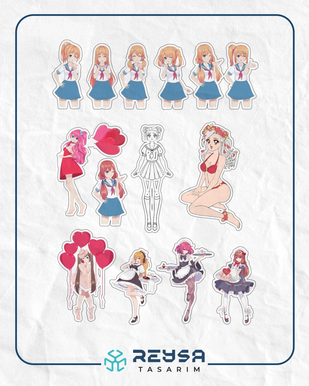 Anime Kızı Sticker Set 1 15 Parça Telefon, Tablet, Defter, Laptop Sticker