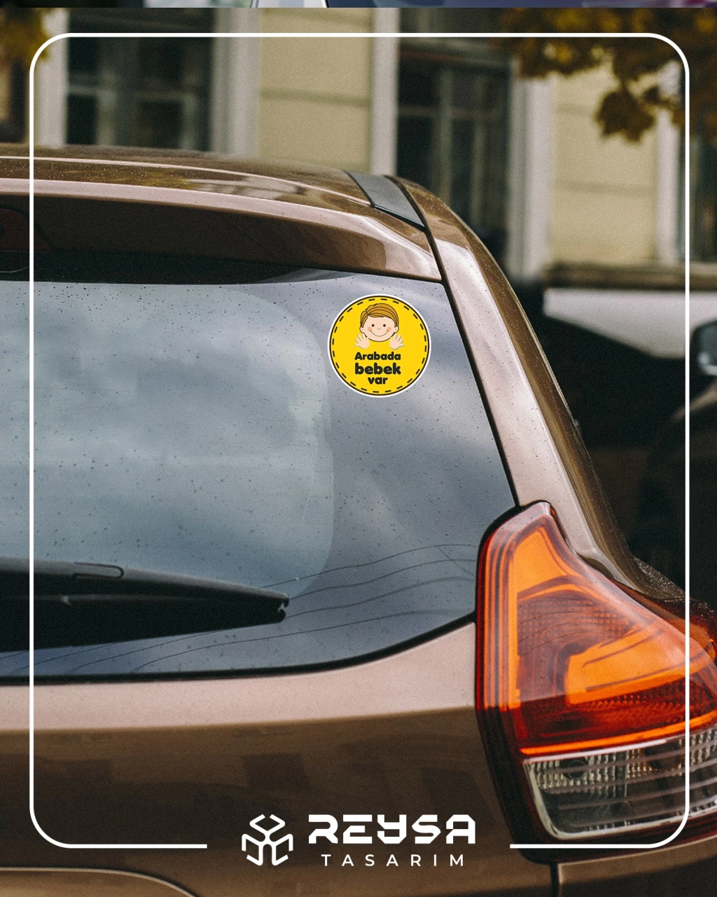 Arabada Bebek Var Sticker 4 10x10 cmRenkli Sticker
