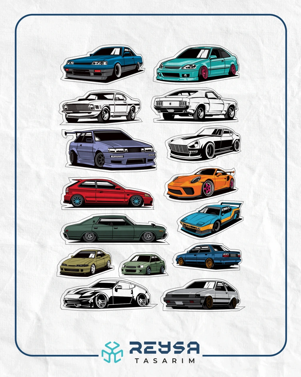 Arabalar Sticker Set 7 15 Parça Telefon, Tablet, Defter, Laptop Sticker