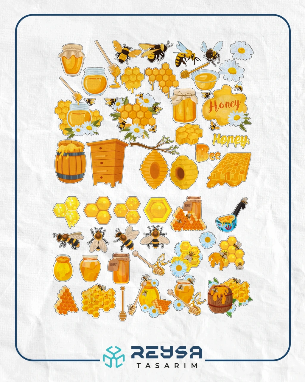 Arı Bal Sticker Set 15 Parça Telefon, Tablet, Defter, Laptop Sticker