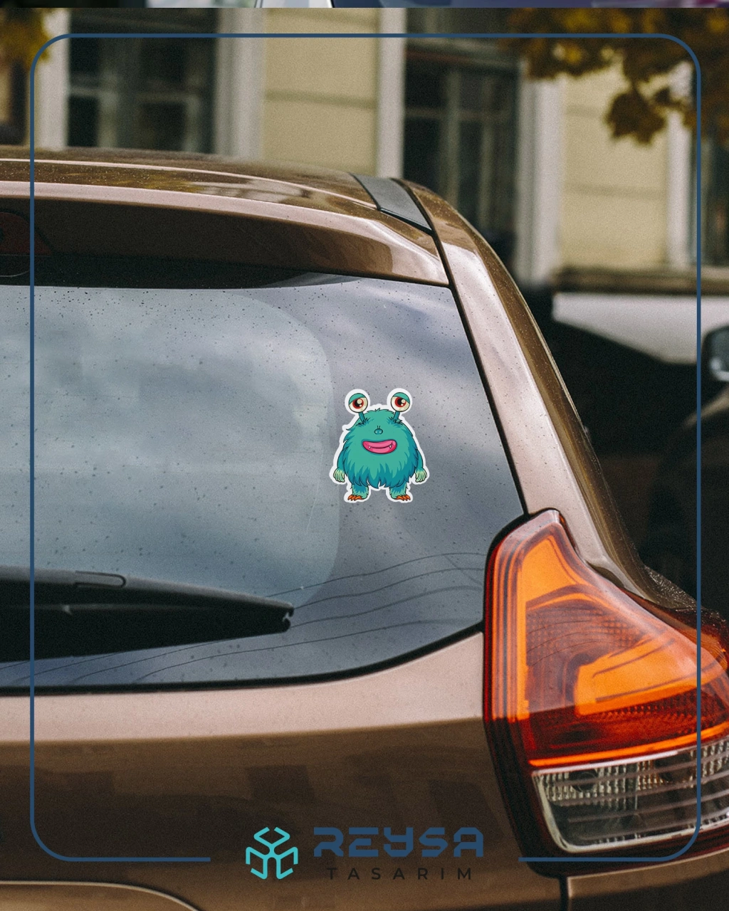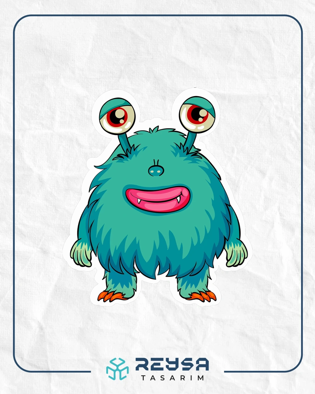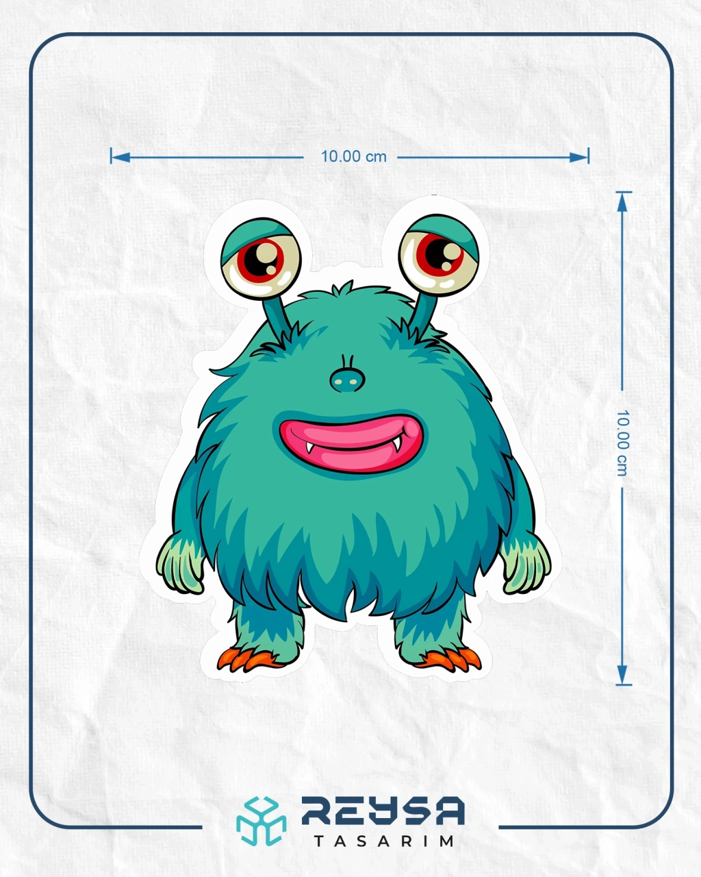 Sevimli Canavar Sticker 10x10 cmRenkli Sticker