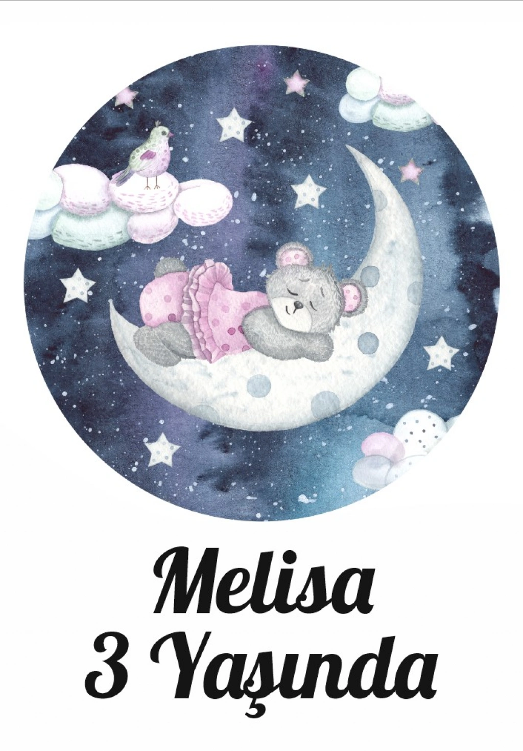 Ayda Uyuyan Ayı Temalı Doğum Günü Afişi - 100x150 Cm