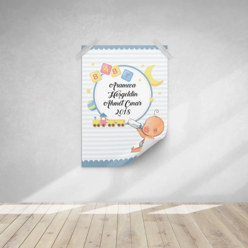 Bebek ve Oyuncak Temalı Baby Shower Afişi 35x50 Cm