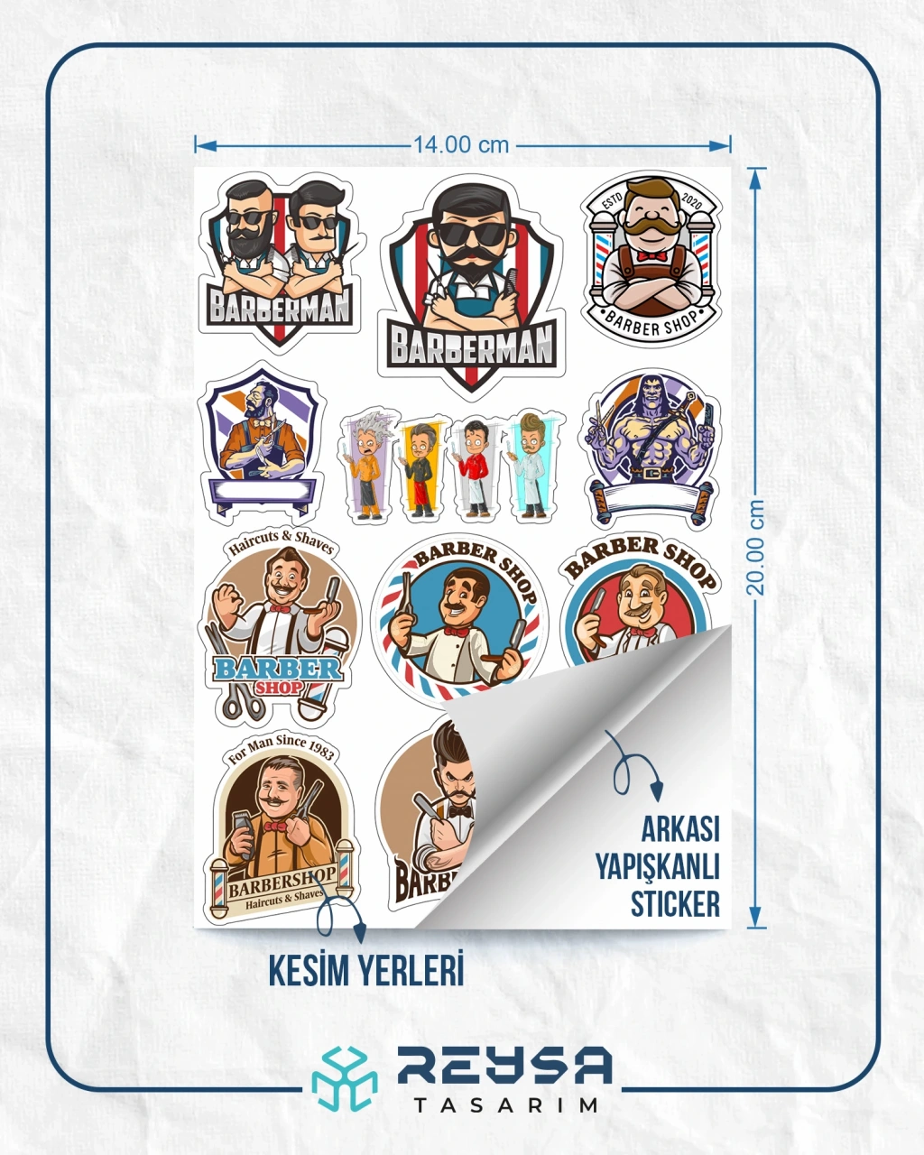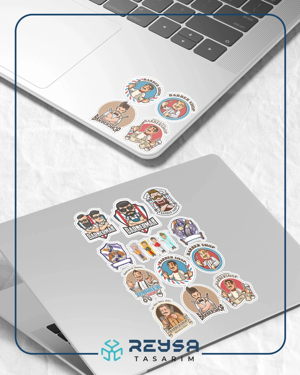 Berber Kuaför Sticker Set-1 15 Parça Telefon, Tablet, Defter, Laptop Sticker