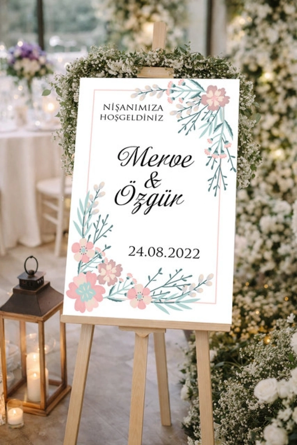 Çiçekli Çerçeveli Düğün, Nişan ve Söz Karşılama Panosu – 50x70 cm