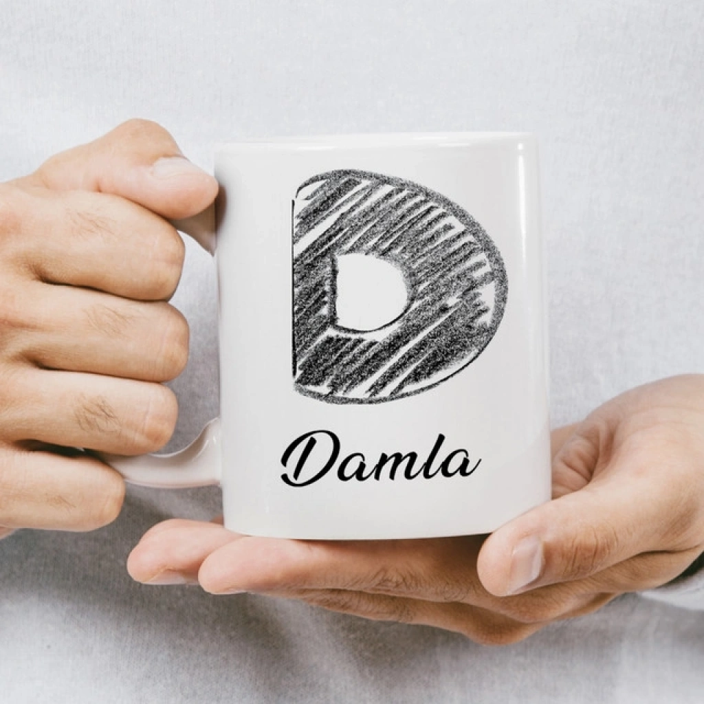 D Harfi Karakalem İsme Özel Kupa