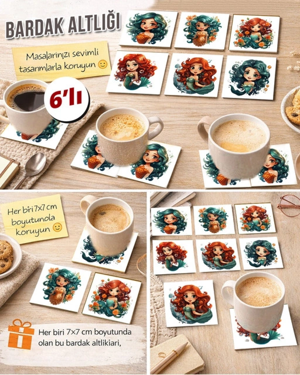 Deniz Kızı 7x7 – 6’lı Set Dekoratif Kare Tasarım