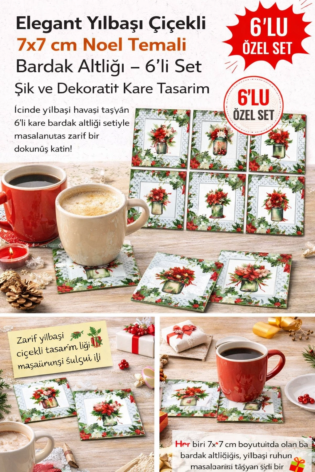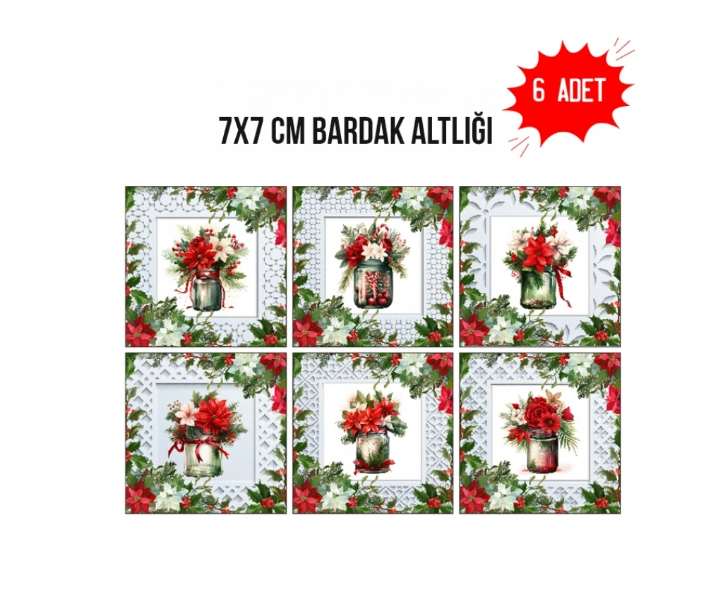 Elegant Yılbaşı 7x7 – 6’lı Set Dekoratif Kare Tasarım