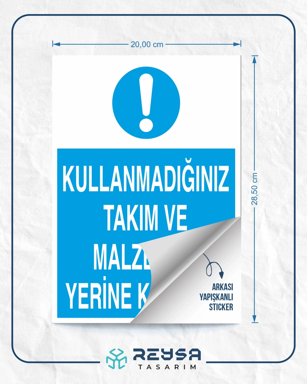 Kullandığınız Takım ve Malzemeyi Yerine Koyunuz Sticker 20X28 Cm