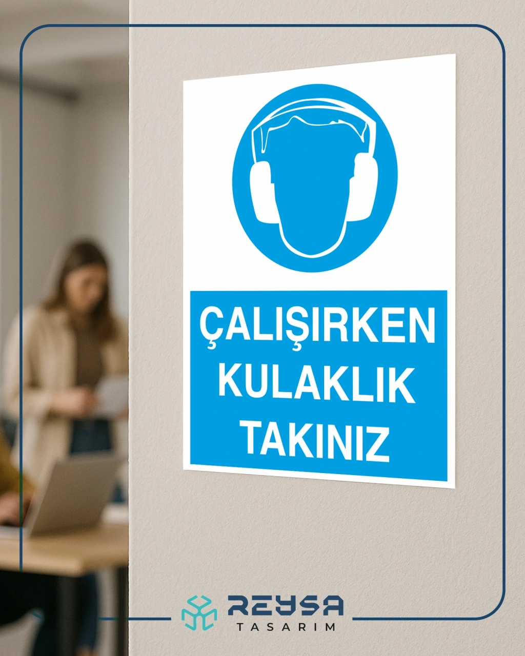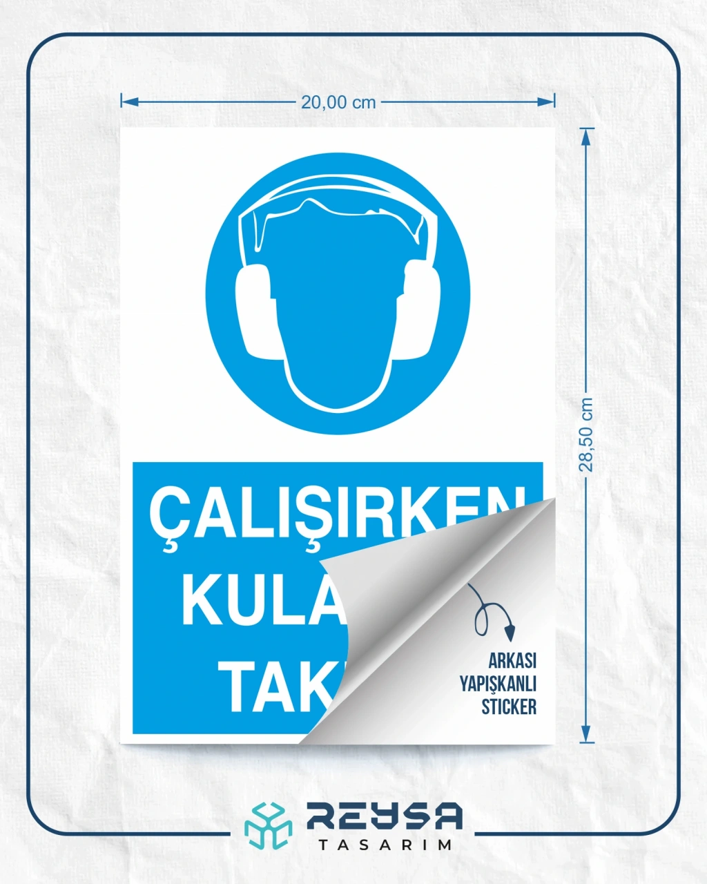 Çalışırken Kulaklık Takınız Sticker 20X28 Cm