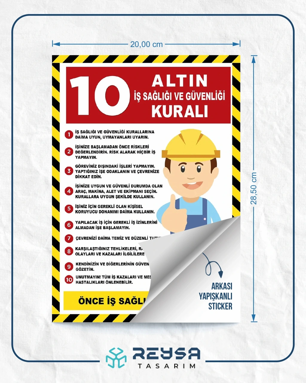 10 Altın İSG Kuralı Sticker 20X28 Cm