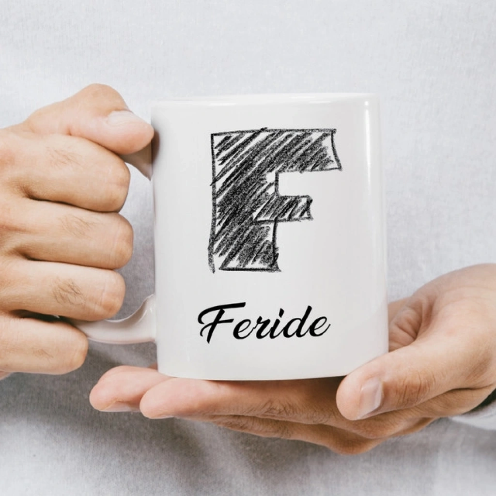 F Harfi Karakalem İsme Özel Kupa
