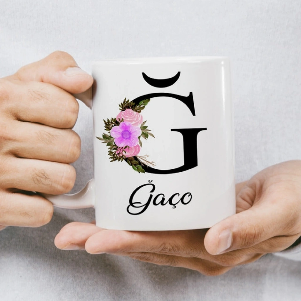 Ğ Harfi Çiçekli İsme Özel Kupa