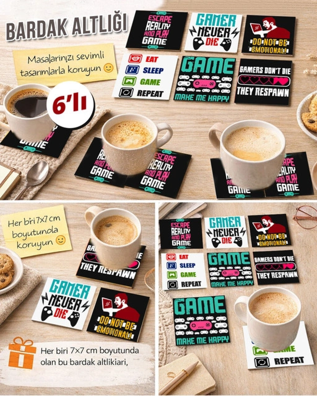 Gamer Temalı 2 7x7 – 6’lı Set Dekoratif Kare Tasarım