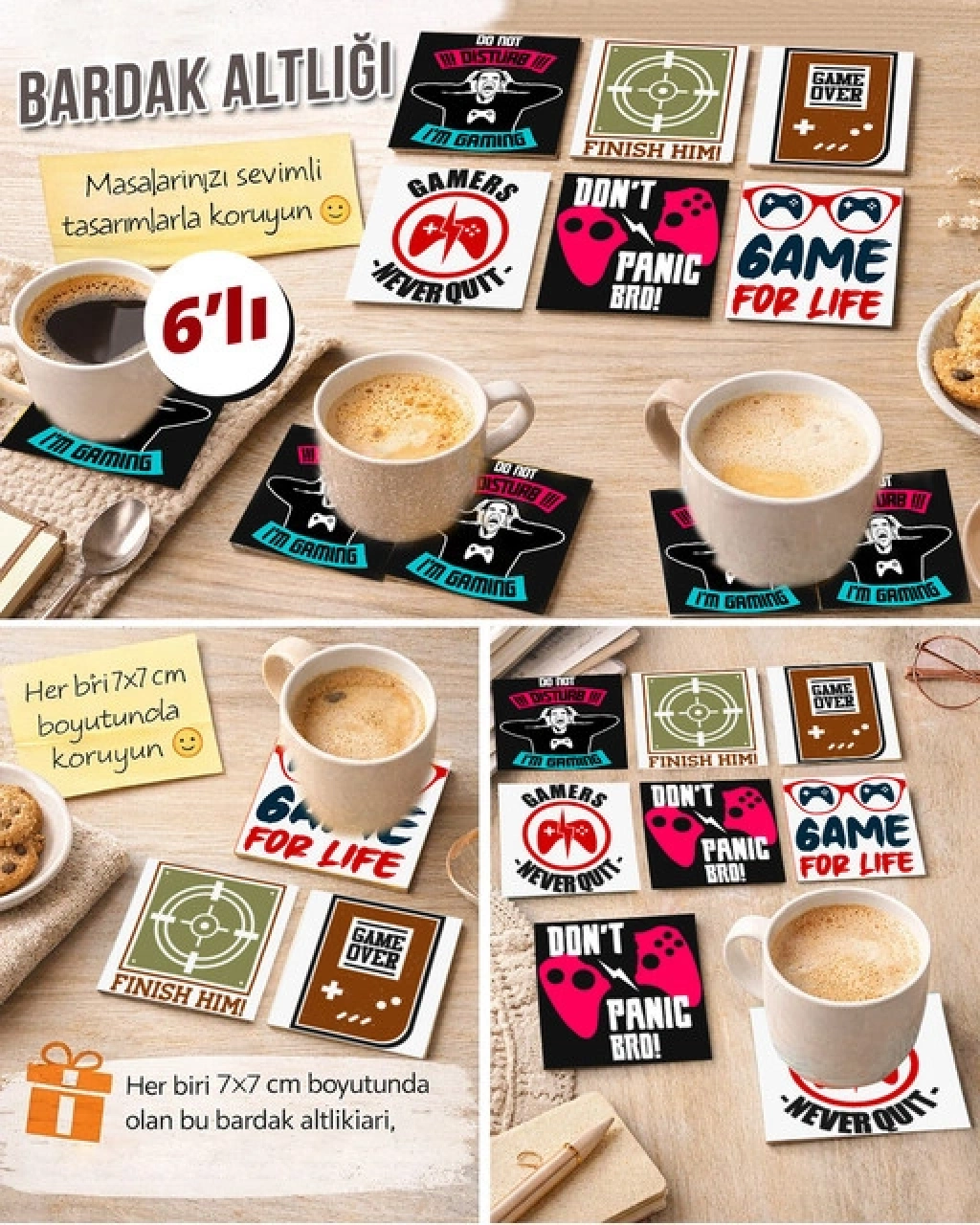 Gamer Temalı 3 7x7 – 6’lı Set Dekoratif Kare Tasarım