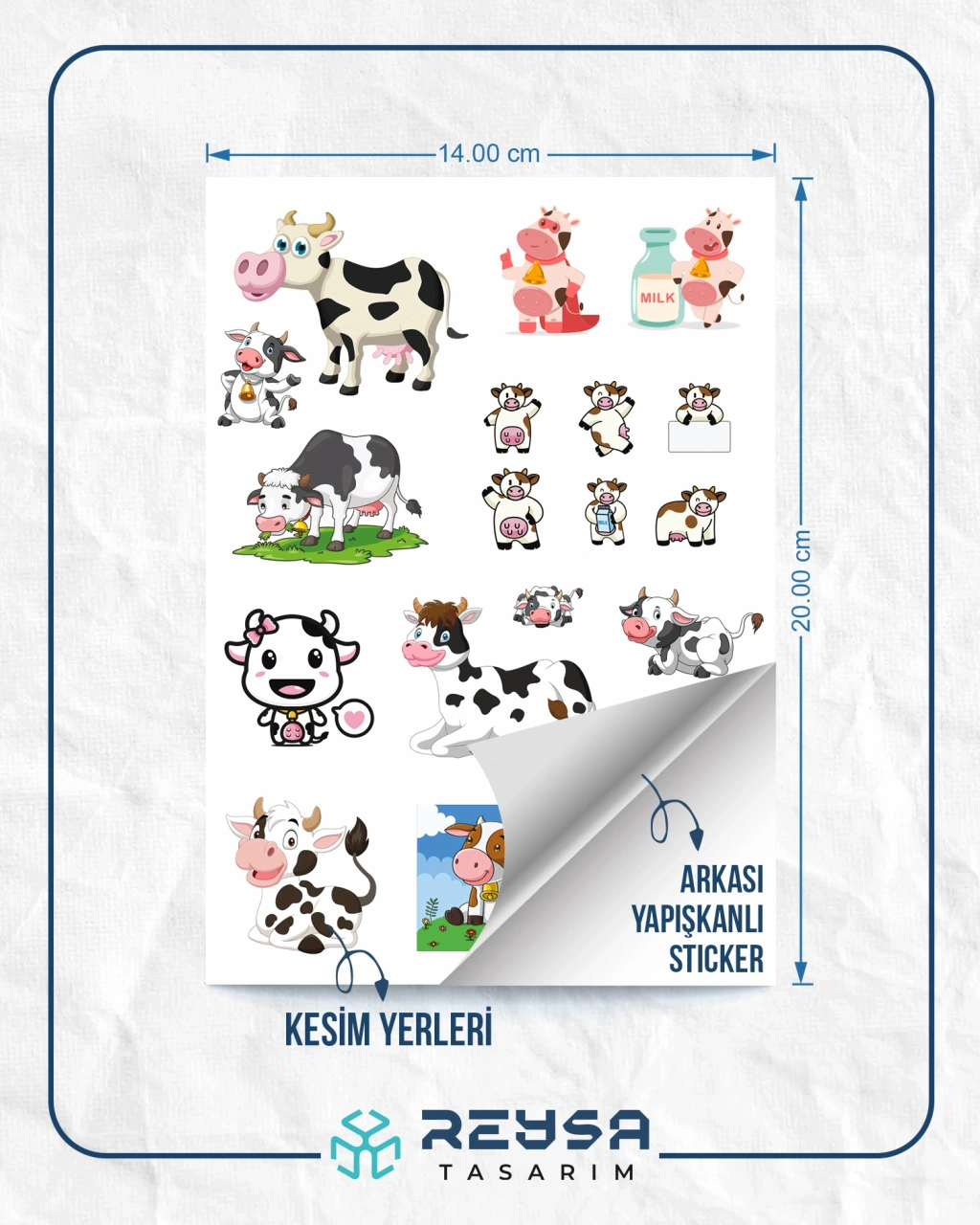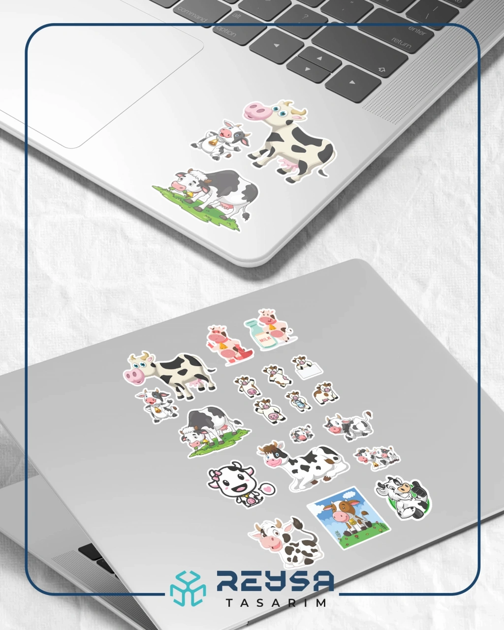 İnek Sticker Set-2 19 Parça Telefon, Tablet, Defter, Laptop Sticker
