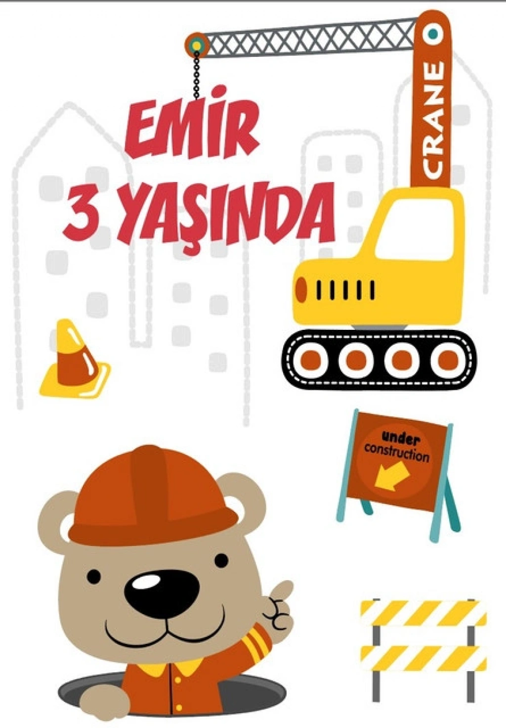 İnşaat ve Sevimli Hayvanlar Temalı Doğum Günü Afişi - 50x70 Cm