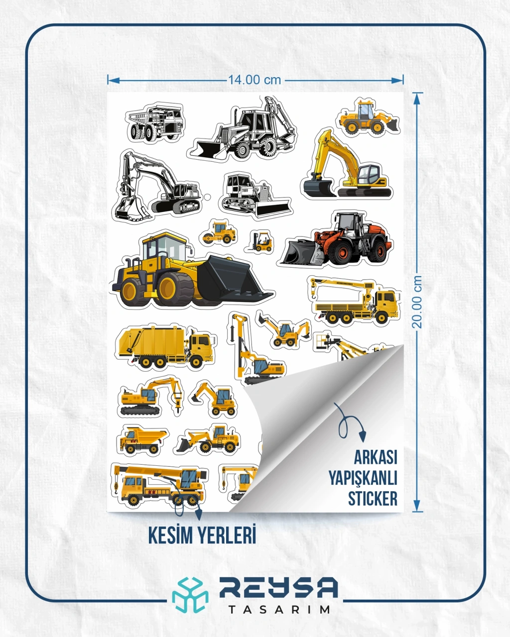 İş Makineleri Sticker Set-2 19 Parça Telefon, Tablet, Defter, Laptop Sticker