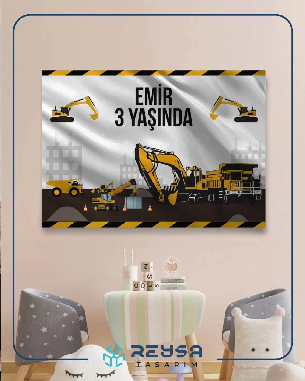 Iş Makinesi Temalı Doğum Günü Afişi 100x150 Cm