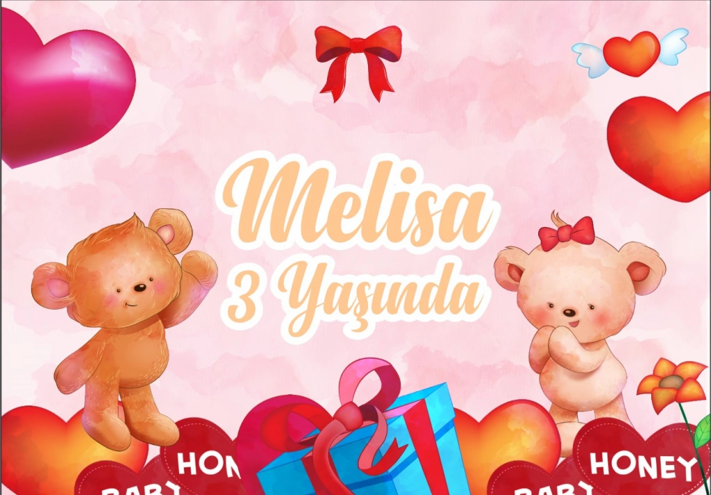 Kalpli Sevimli Ayıcıklar Temalı Doğum Günü Afişi - 100x150 Cm