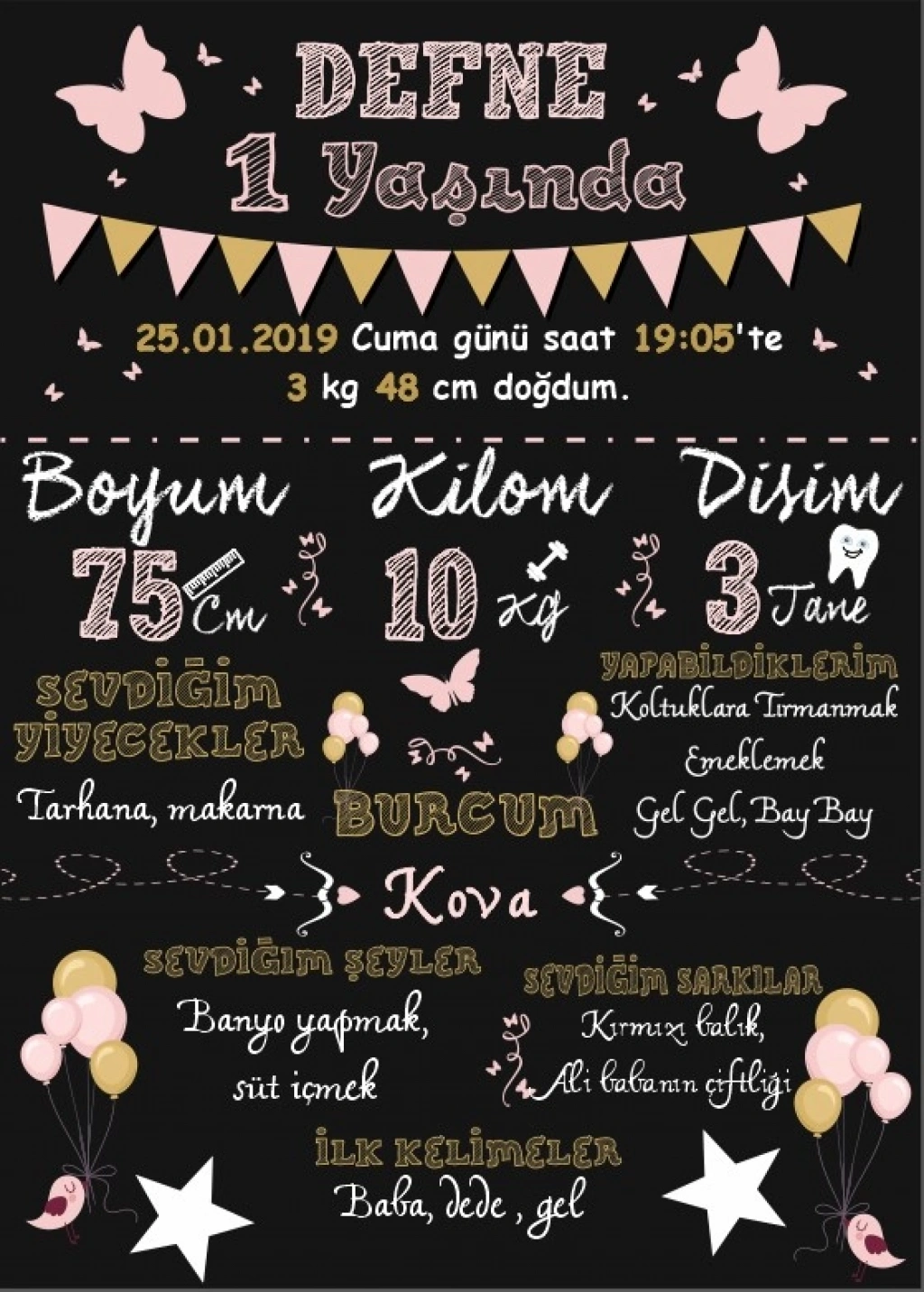 Sipariş sonrası bebeğe ait bilgileri (İsim – Doğum Tarihi – Saat – Boy – Kilo) iletmeniz yeterlidir.