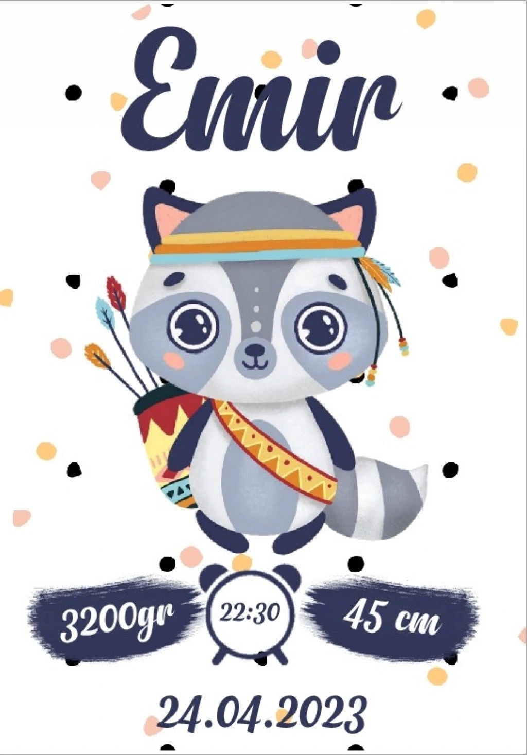Sipariş sonrası bebeğe ait bilgileri (İsim – Doğum Tarihi – Saat – Boy – Kilo) iletmeniz yeterlidir.