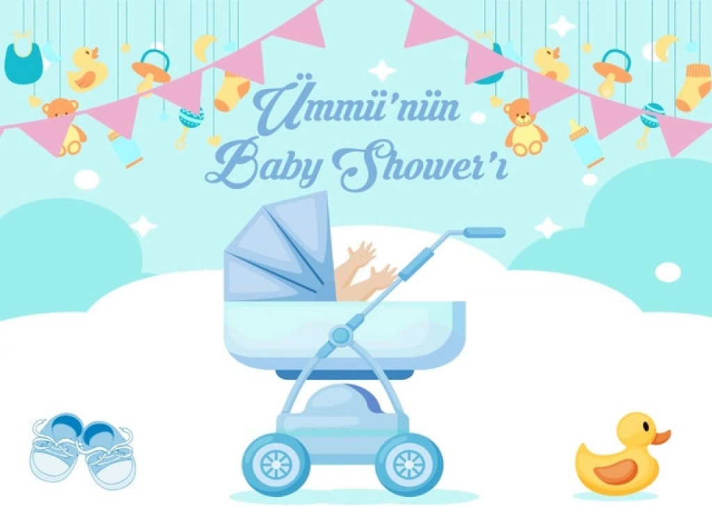 Mavi Bebek Arabası Temalı Baby Shower Afişi 100x150 Cm