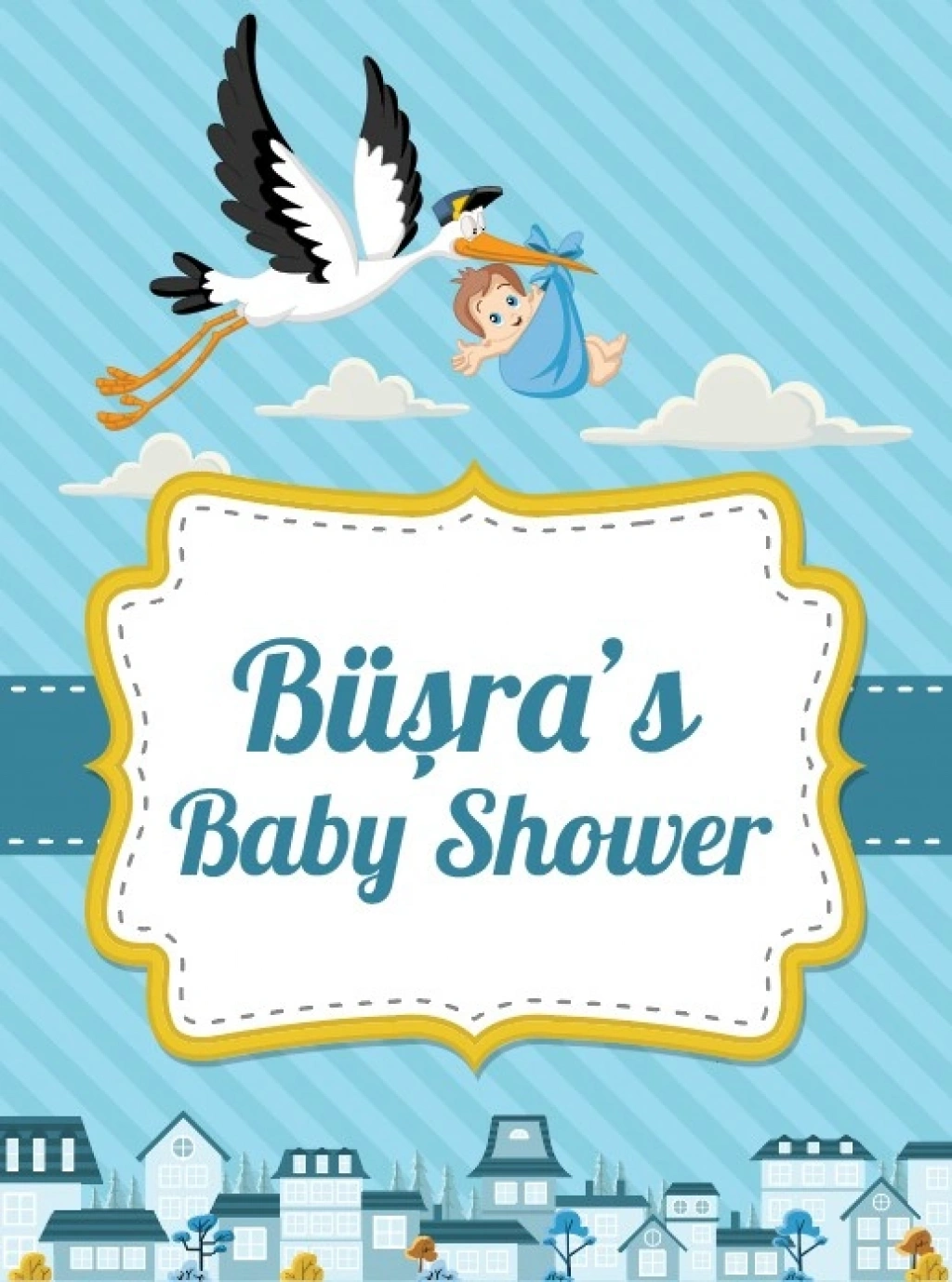 Mavi Çizgili Leylek Temalı Baby Shower Afişi 70x100 Cm