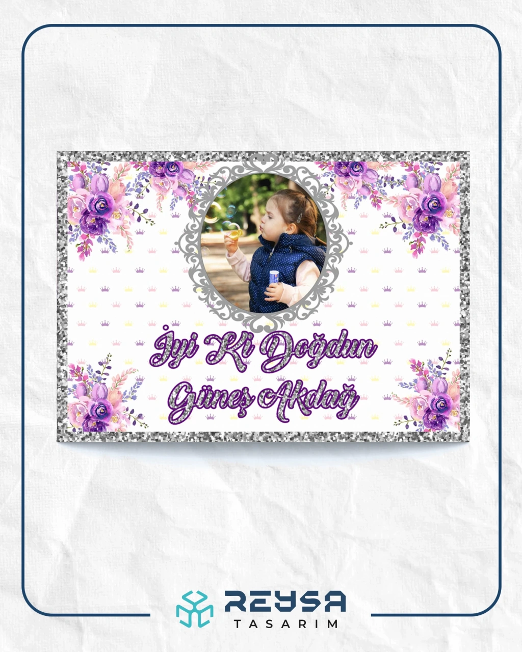Mor Çiçekli Doğum Günü Afişi 35X50 cm