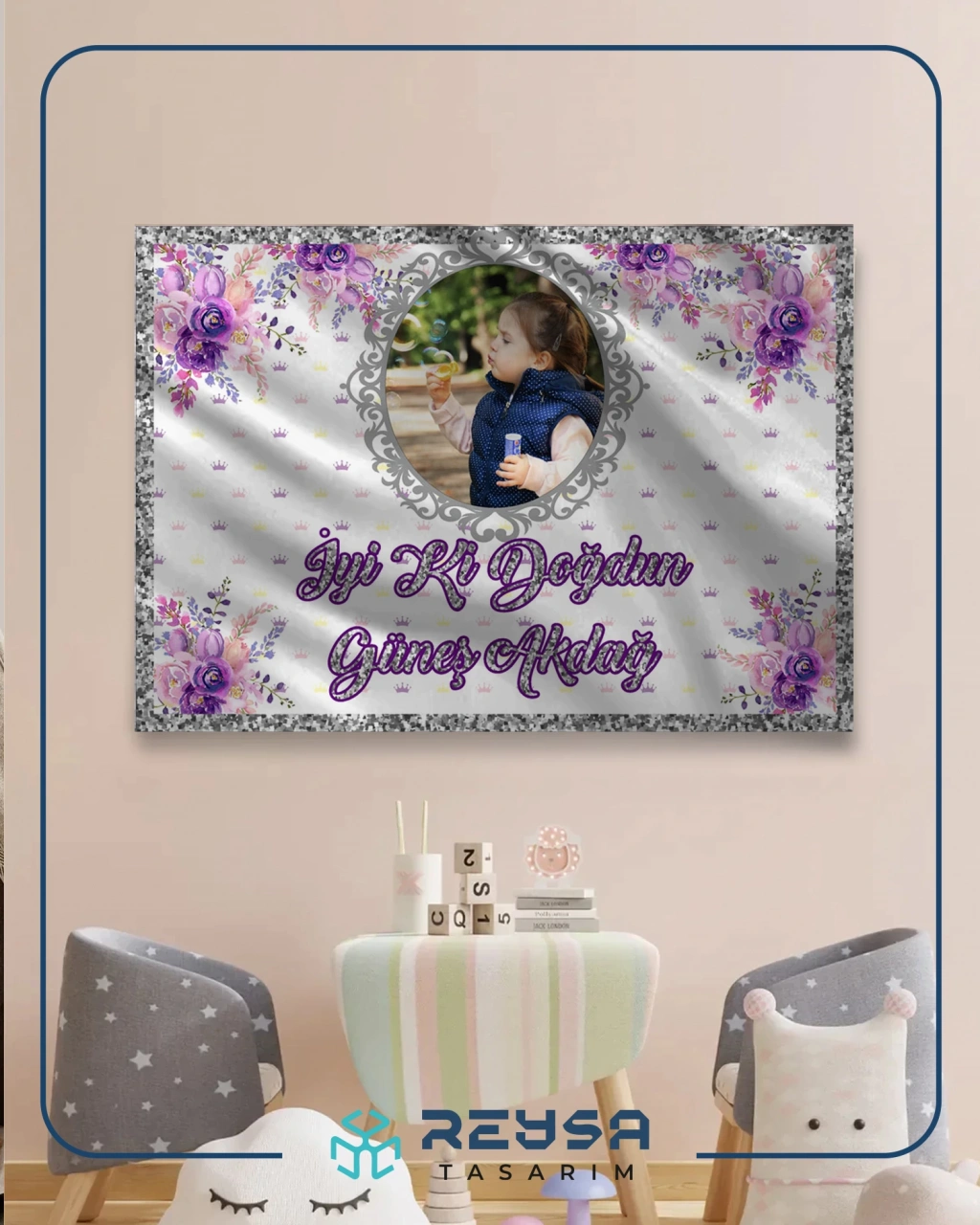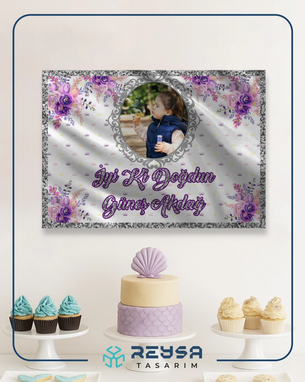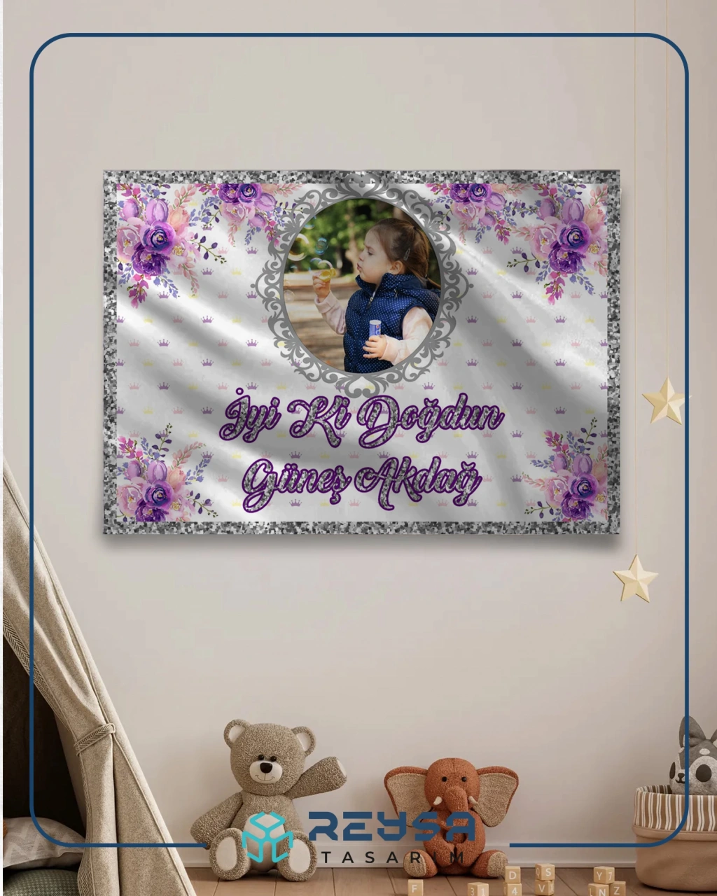 Mor Çiçekli Doğum Günü Afişi 70X100 cm