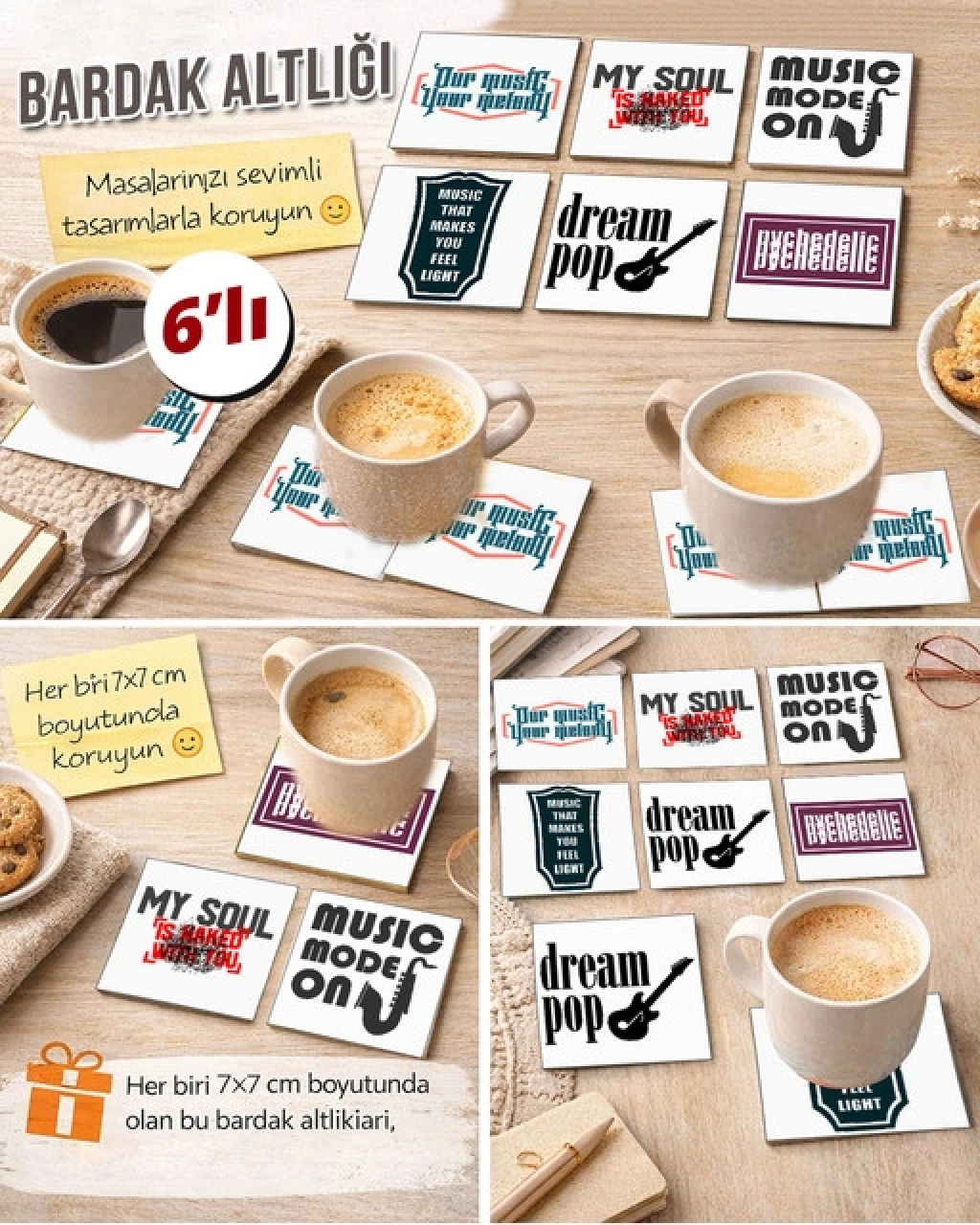 Müzik Temalı 9 7x7 – 6’lı Set Dekoratif Kare Tasarım