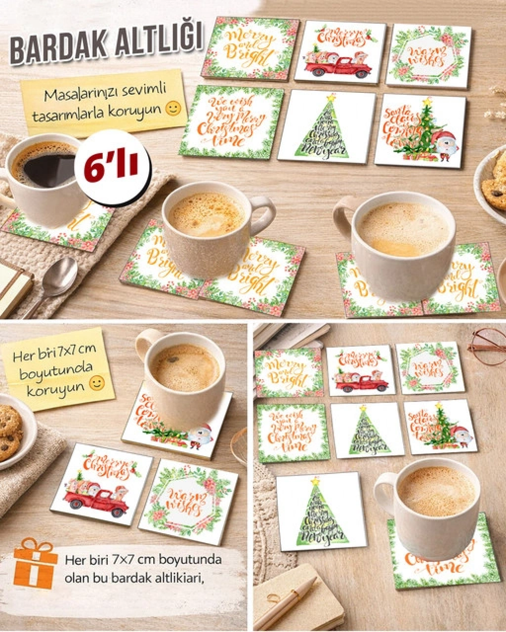 Noel Baba 7x7 – 6’lı Set Dekoratif Kare Tasarım