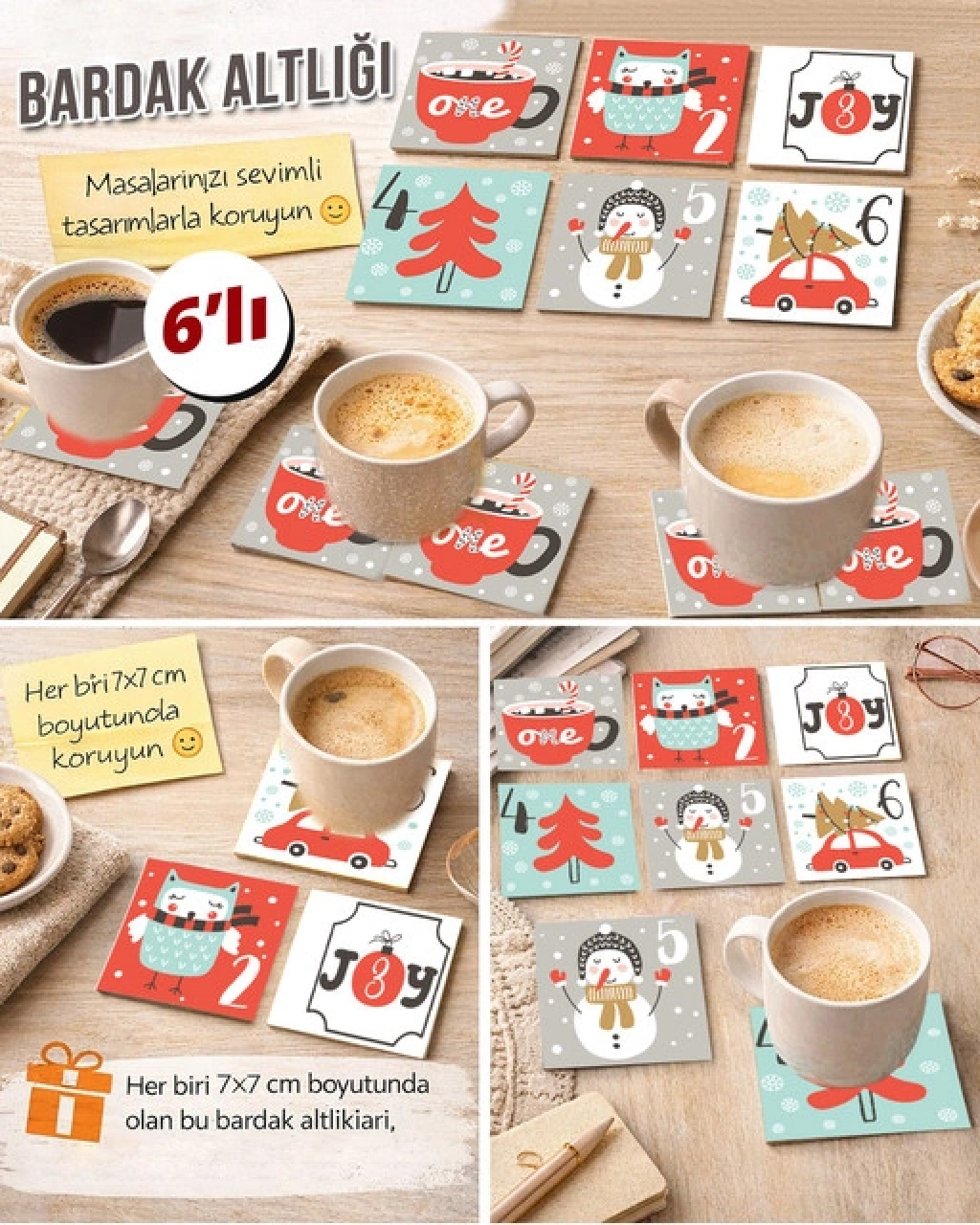 Noel Temalı 5 7x7 – 6’lı Set Dekoratif Kare Tasarım