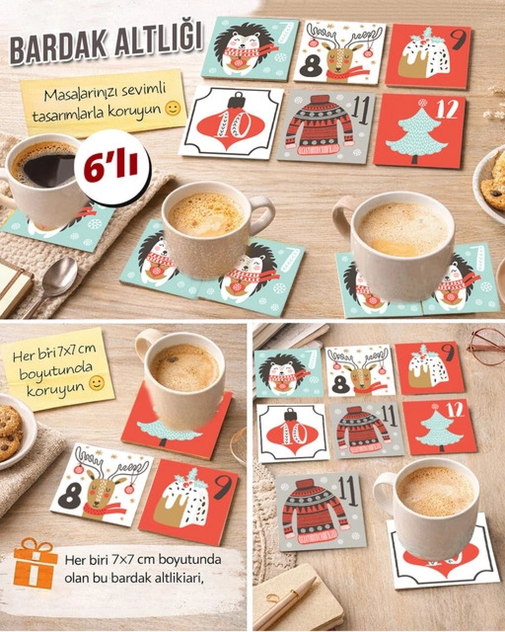 Noel Temalı 6 7x7 – 6’lı Set Dekoratif Kare Tasarım