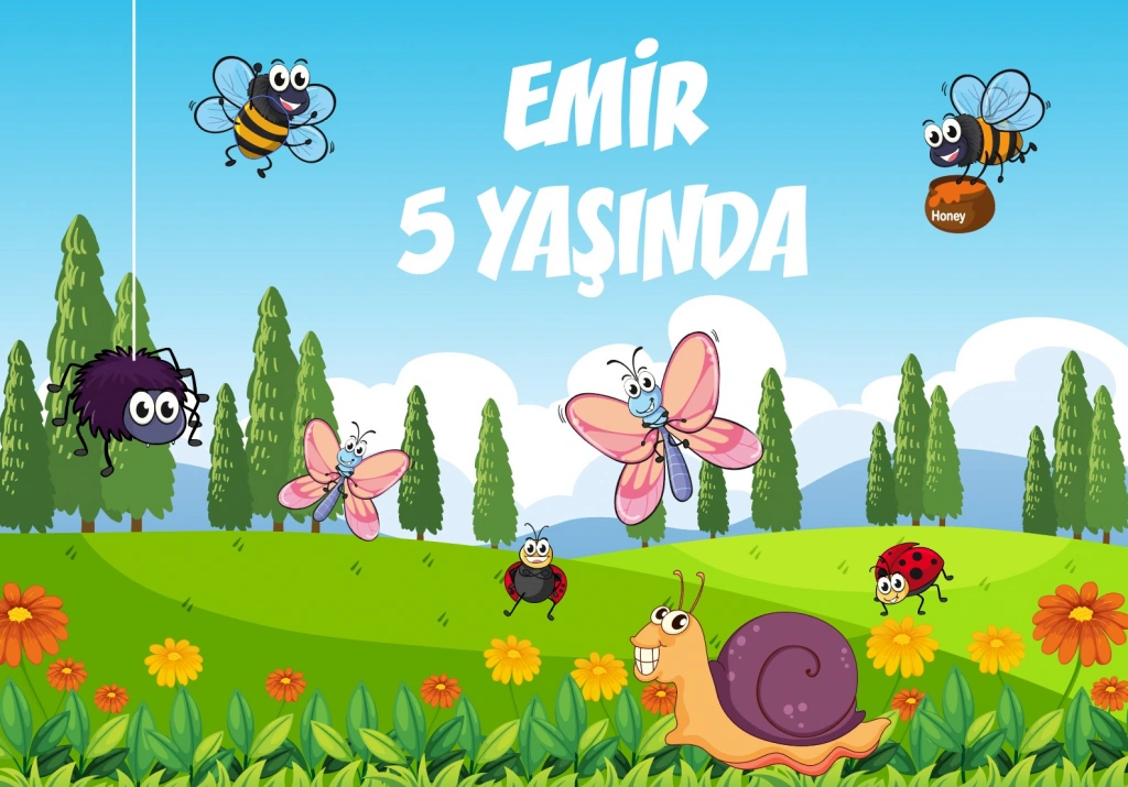 Orman ve Arılar Temalı Doğum Günü Afişi - 100x150 Cm