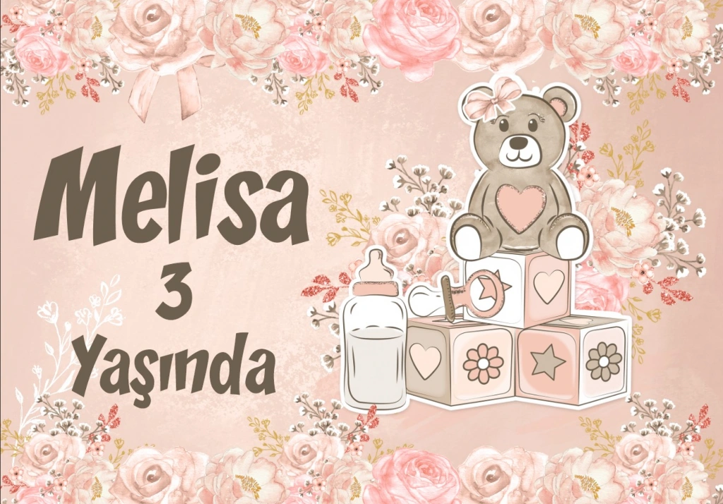Pembe Ayıcık Temalı Doğum Günü Afişi - 100x150 Cm