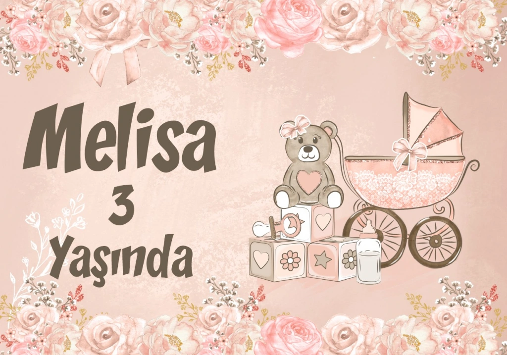 Pembe Ayıcık Temalı Doğum Günü Afişi - 100x150 Cm