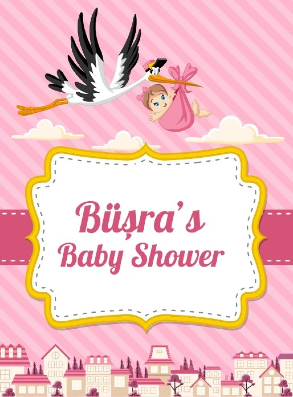 Pembe Çzigli Leylek Temalı Baby Shower Afişi 35x50 Cm