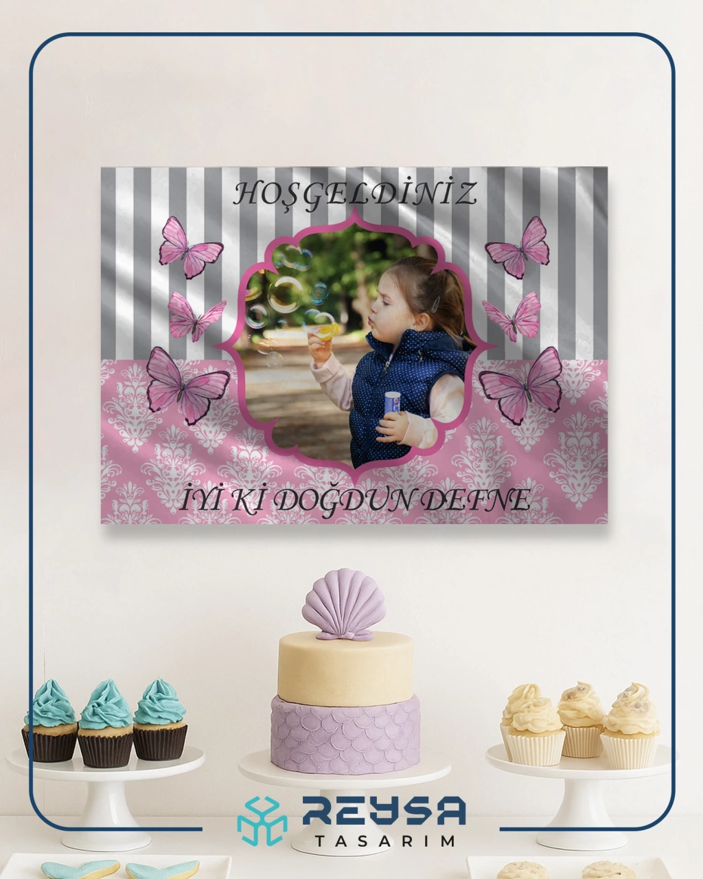 Pembe Kelebek Temalı Doğum Günü Afişi 50X70 cm