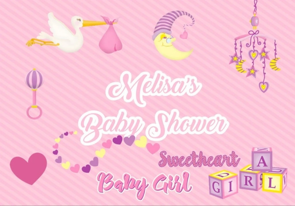 Pembe Leylek ve Oyuncak Temalı Baby Shower Afişi 70x100 Cm