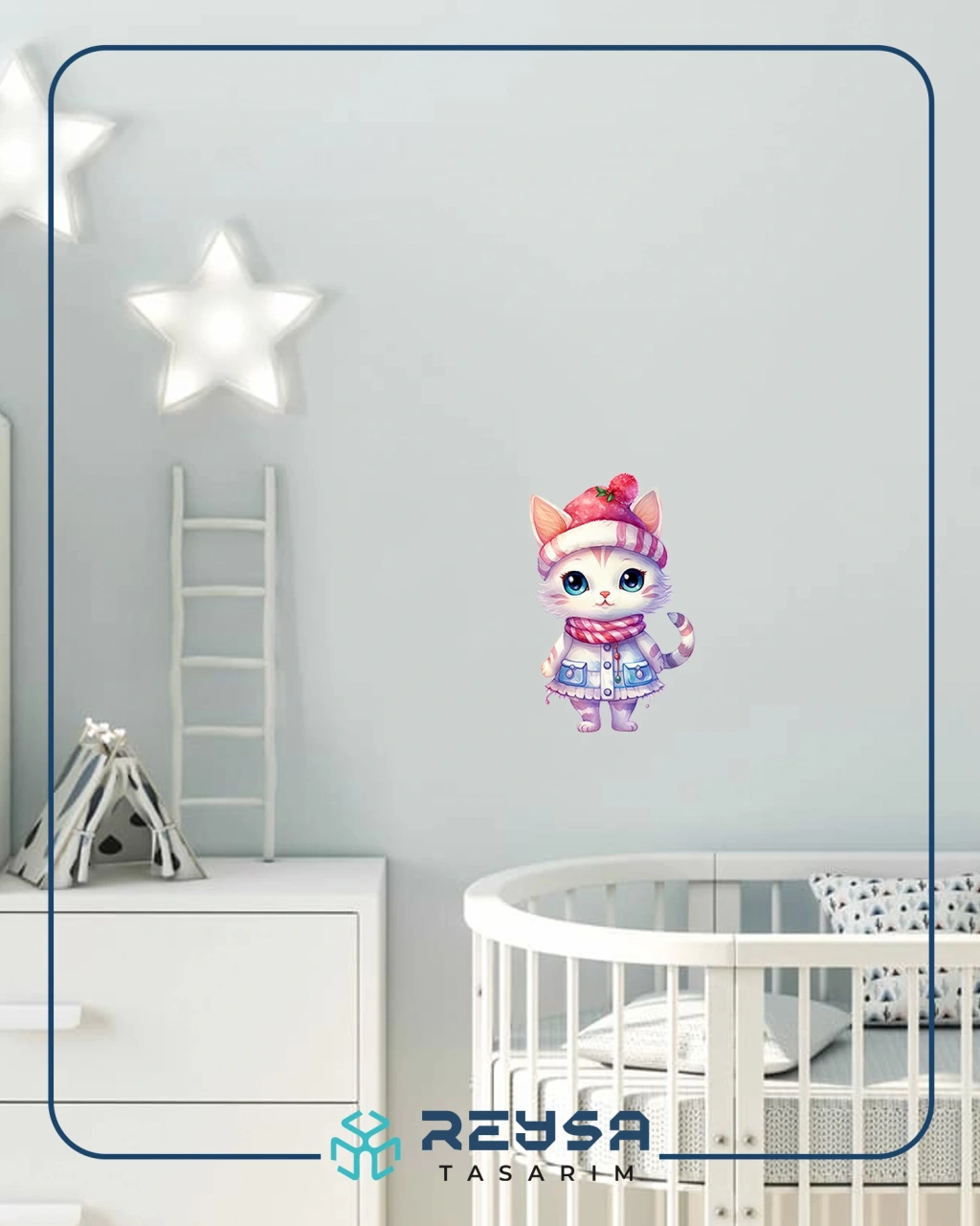 Pofuduk Şapkalı Kış Kedisi Duvar Stickerı
