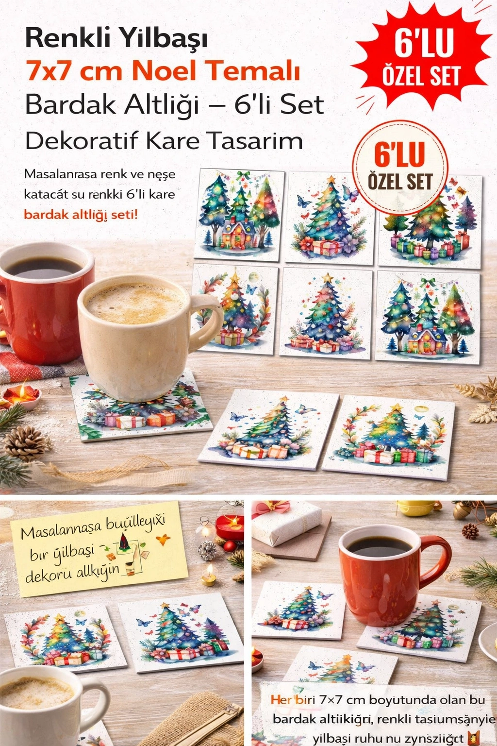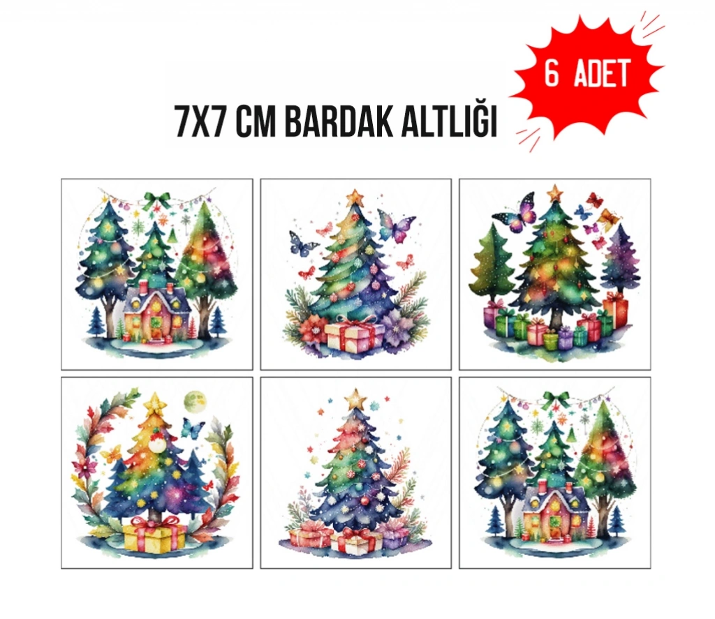 Renkli Yılbaşı 7x7 – 6’lı Set Dekoratif Kare Tasarım