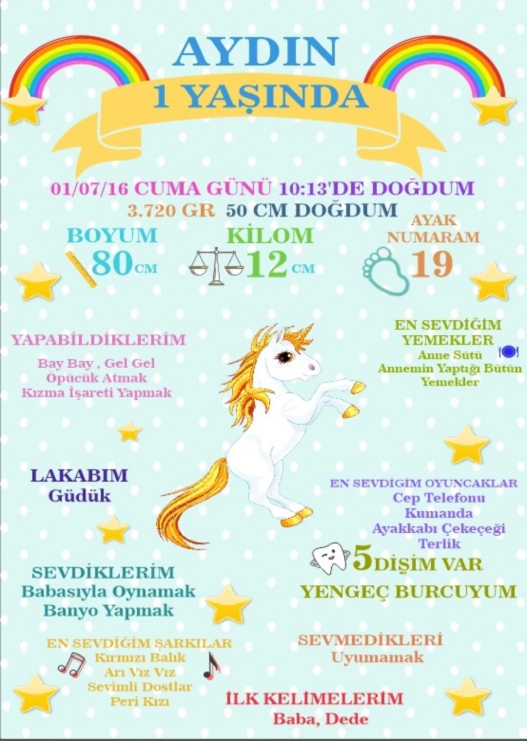 • Kişiye özel isim ve doğum bilgileri eklenir