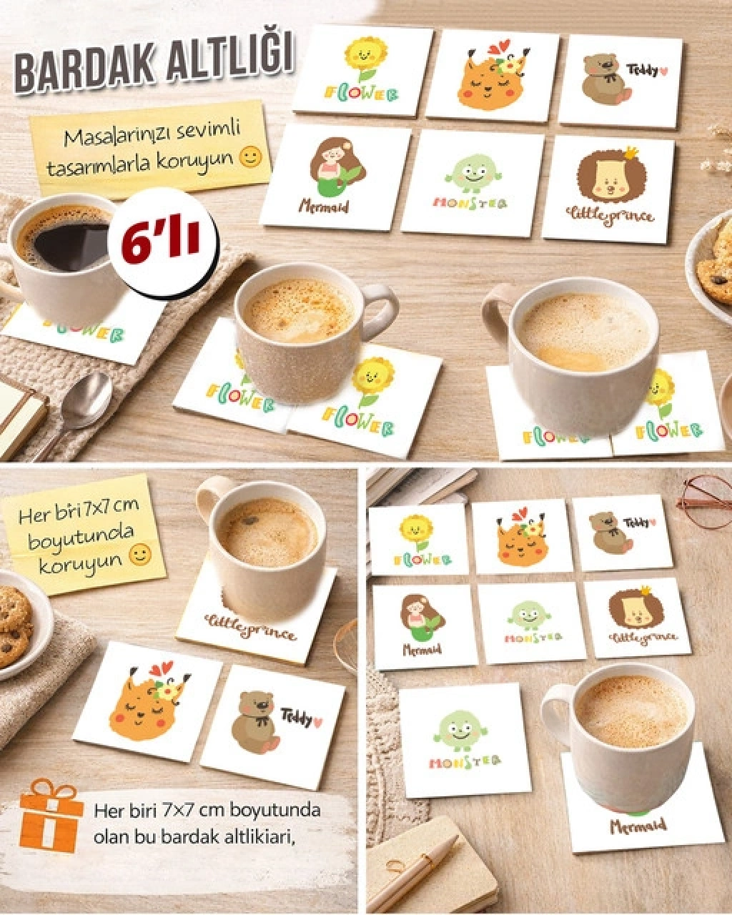 Sevimli Figürler 7x7 – 6’lı Set Dekoratif Kare Tasarım