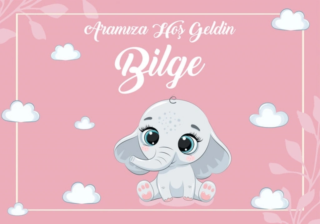 Sevimli Fil Temalı Bebek Karşılama Afişi 35x50 Cm