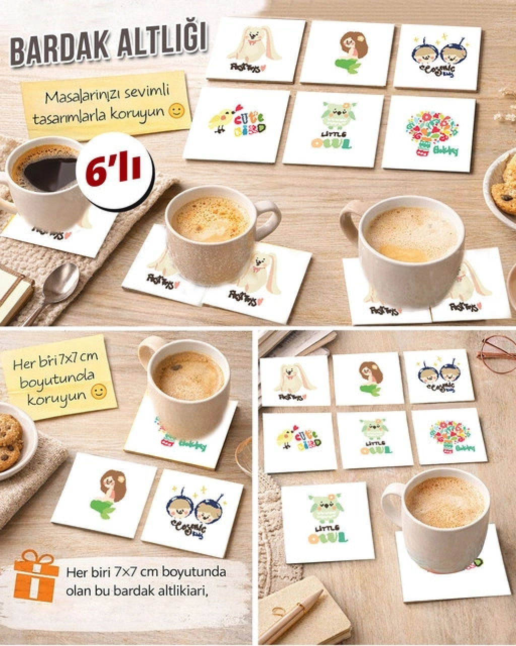 Sevimli Hayvanlar 7x7 – 6’lı Set Dekoratif Kare Tasarım