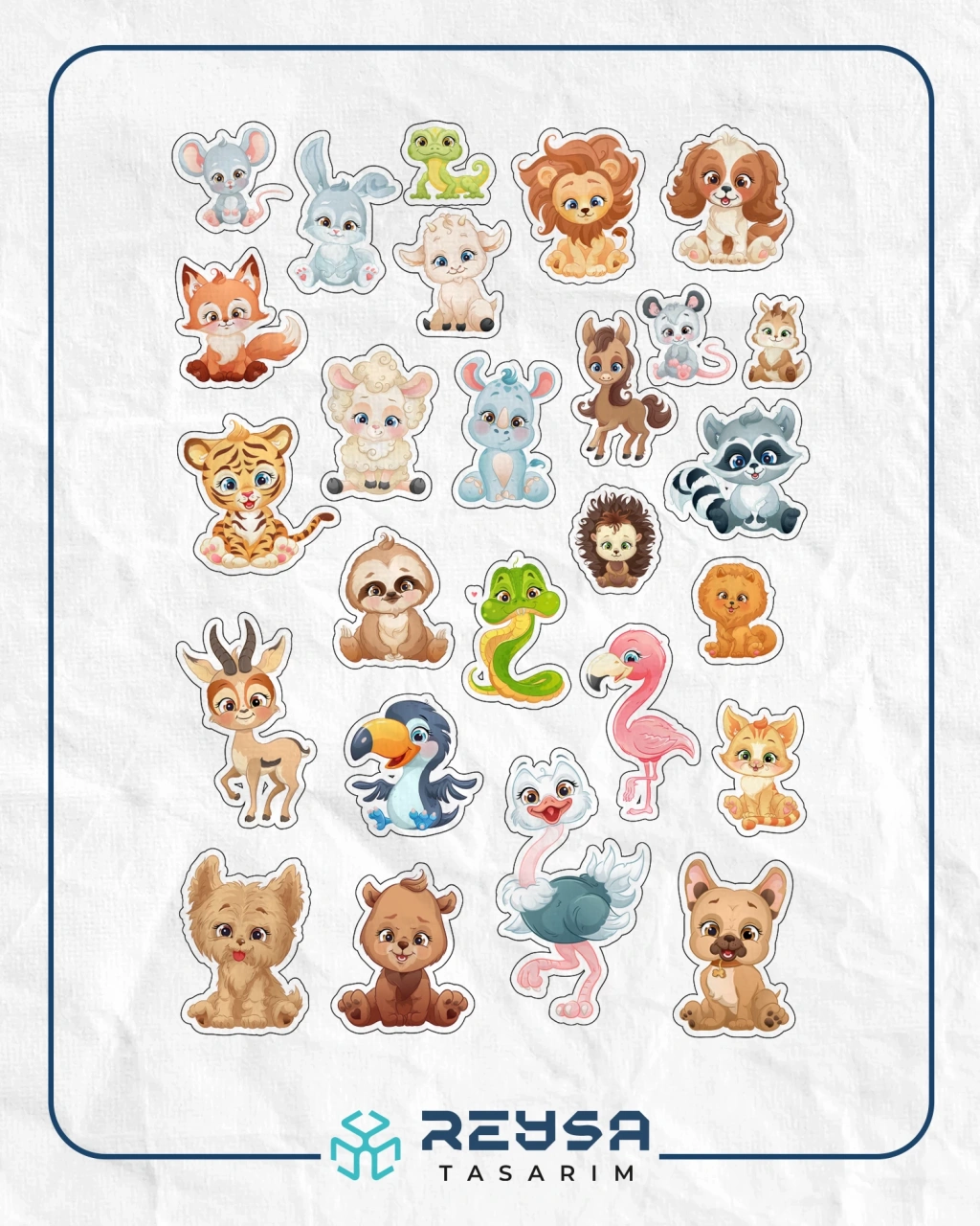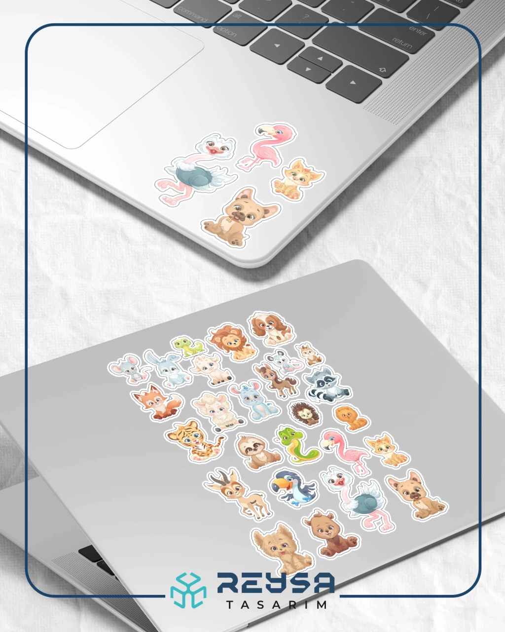 Sevimli Hayvanlar Alemi Sticker Set 1 27 Parça Telefon, Tablet, Defter, Laptop Sticker