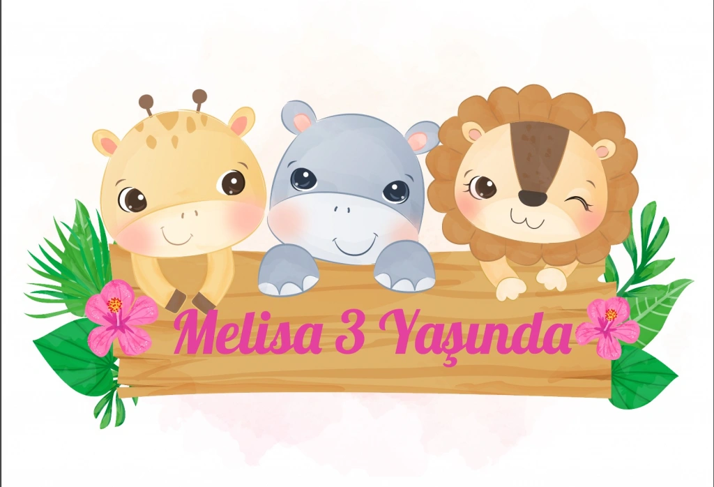 Sevimli Hayvanlar Partisi Temalı Doğum Günü Afişi 35X50 cm