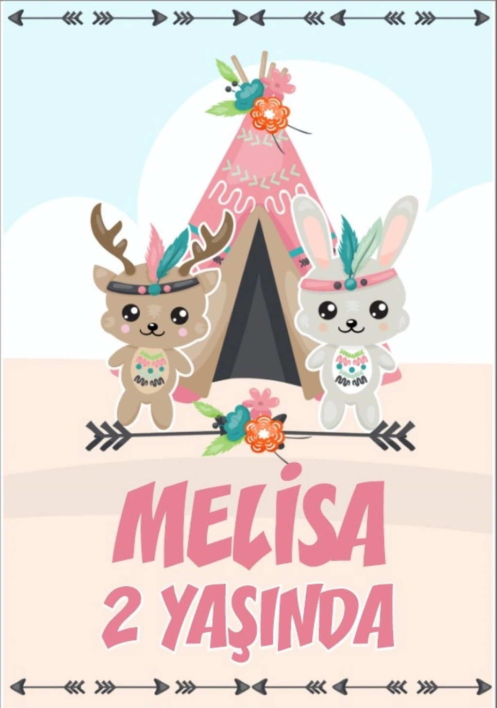 Sevimli Hayvanlar ve Çadır Temalı Doğum Günü Afişi - 50x70 Cm